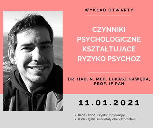 Celem spotkania jest przedstawienie procesów psychologicznych kształtujących ryzyko rozwoju psychoz. Omówione zostaną badania własne autora podejmujące temat interakcji czynników środowiskowych (ekspozycja na wydarzenia traumatyczne), psychologicznych (osobowość, zniekształcenia poznawcze) i biologicznych, które mogą leżeć u podłoża zaburzeń psychotycznych. Przedstawiona zostanie perspektywa kontinuum psychoz, w ramach której autor prowadzi badania. Omówione zostaną również trudności badania zjawisk odnoszących się do stanów ryzyka w perspektywie prospektywnej (np. trudności w predykcji).