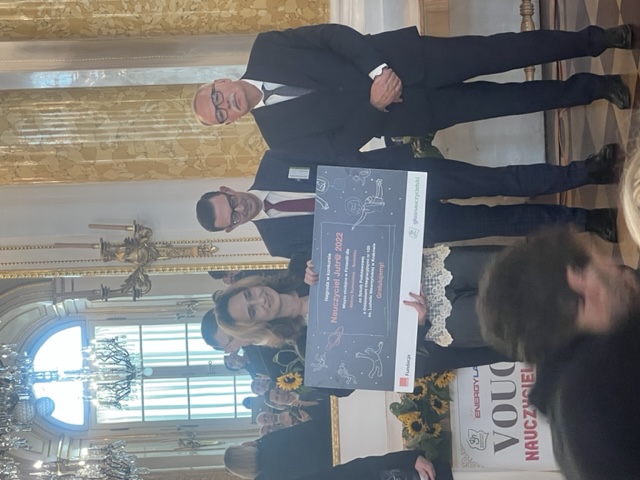 W tym roku zaszczytny tytuł Nauczyciel Roku 2022 odebrała, z rąk Przewodniczącego Jury profesora Stefana M. Kwiatkowskiego, nauczycielka bibliotekarka z Zespołu Szkolno-Przedszkolnego w Pliszczynie Iwona Pietrzak - Płachta.