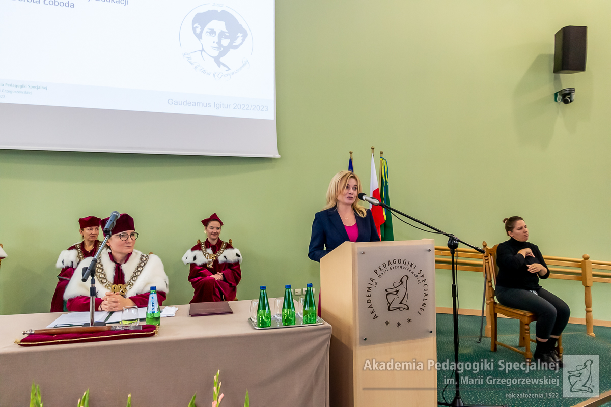 W dniu 4 października 2022 r. Akademia Pedagogiki Specjalnej im. Marii Grzegorzewskiej uroczyście zainaugurowała rozpoczęcie roku akademickiego 2022/2023. Najważniejszym punktem programu tego dnia były ślubowania nowych studentek i studentów oraz doktorantek i doktorantów. Rektor dr hab. Barbara Marcinkowska, prof. APS podkreślała, że nowo przyjęte osoby, jeśli tylko zdecydują się zachować na co dzień misję naszej patronki Marii Grzegorzewskiej, staną się na zawsze częścią Społeczności Akademii.