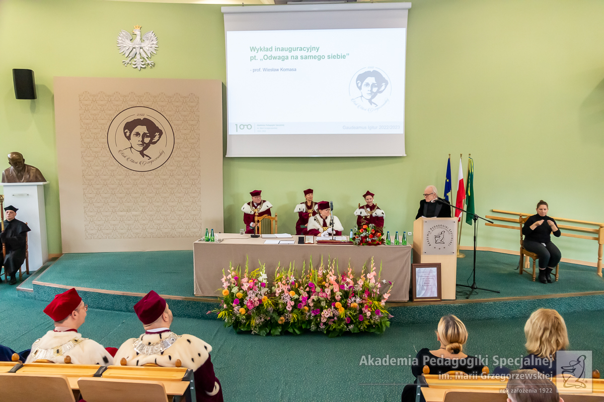 Uroczystość Inauguracji Roku Akademickiego 2022/2023 uświetnił wykład „Odwaga na samego siebie” Profesora Wiesława Komasy, aktora, reżysera teatralnego i pedagoga, od ponad 30 lat związanego z Akademią Teatralną w Warszawie.
