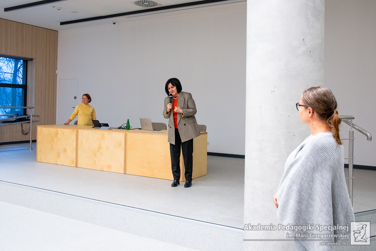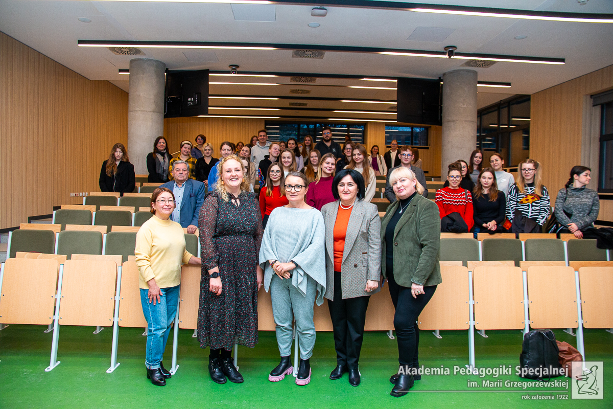 W ramach wizyty odbył się wykład naukowy na temat edukacji włączającej w Uzbekistanie w czasie, którego Pani Profesor podzieliła się wiedzą naukową oraz doświadczeniem praktycznym z pracownikami Akademii oraz Studentkami oraz Studentami.