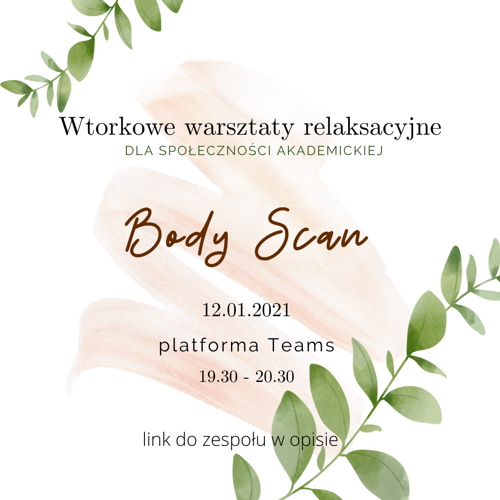 Pierwsze zajęcia w Nowy Roku poświęcone będą technice uważnej obserwacji ciała tzw. skanowaniu ciała. Zapraszamy serdecznie.