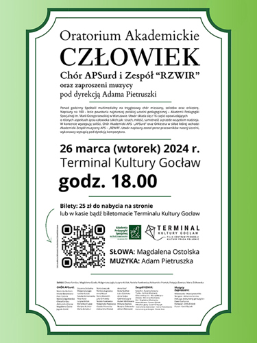 Akademia Pedagogiki Specjalnej im. Marii Grzegorzewskiej zaprasza na Oratorium Akademickie “Człowiek”. Wydarzenie odbędzie się 26 marca o godz. 18:00 w Terminalu Kultury Gocław.
