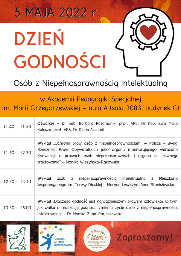 Europejski Dzień Walki z Dyskryminacją Osób Niepełnosprawnych oraz Dzień Godności Osoby z Niepełnosprawnością Intelektualną obchodzony jest co roku 5 maja. W tym roku w Akademii Pedagogiki Specjalnej im. Marii Grzegorzewskiej z tej okazji odbędzie się konferencja naukowa, godz. 11:40, aula A.